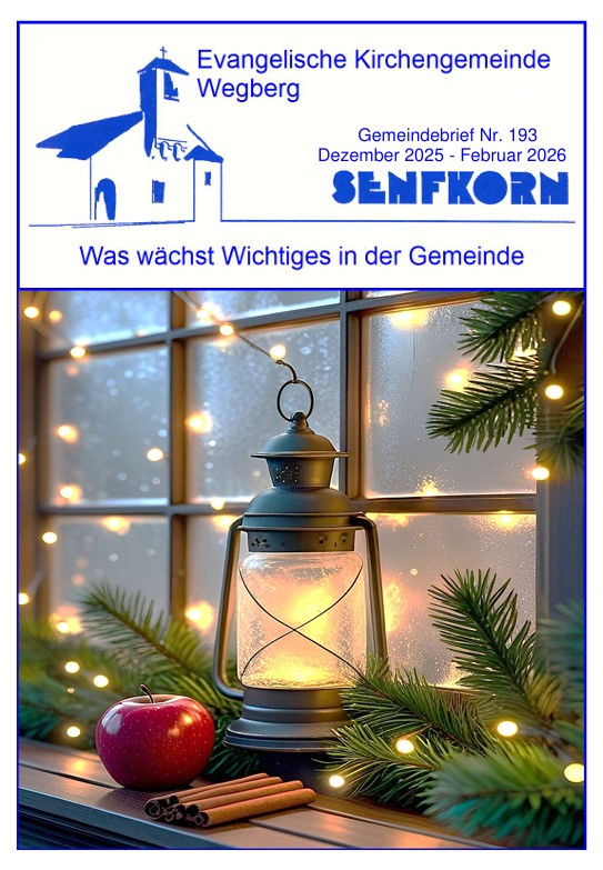 beantragen Sie mit einer E-Mail an (wegberg@ekir.de) den Erhalt unseres Gemeindebriefs Das Senfkorn als PDF-Datei an Ihre E-Mailadresse. Sie werden automatisch aus der Liste der Papierverteilung gestrichen.